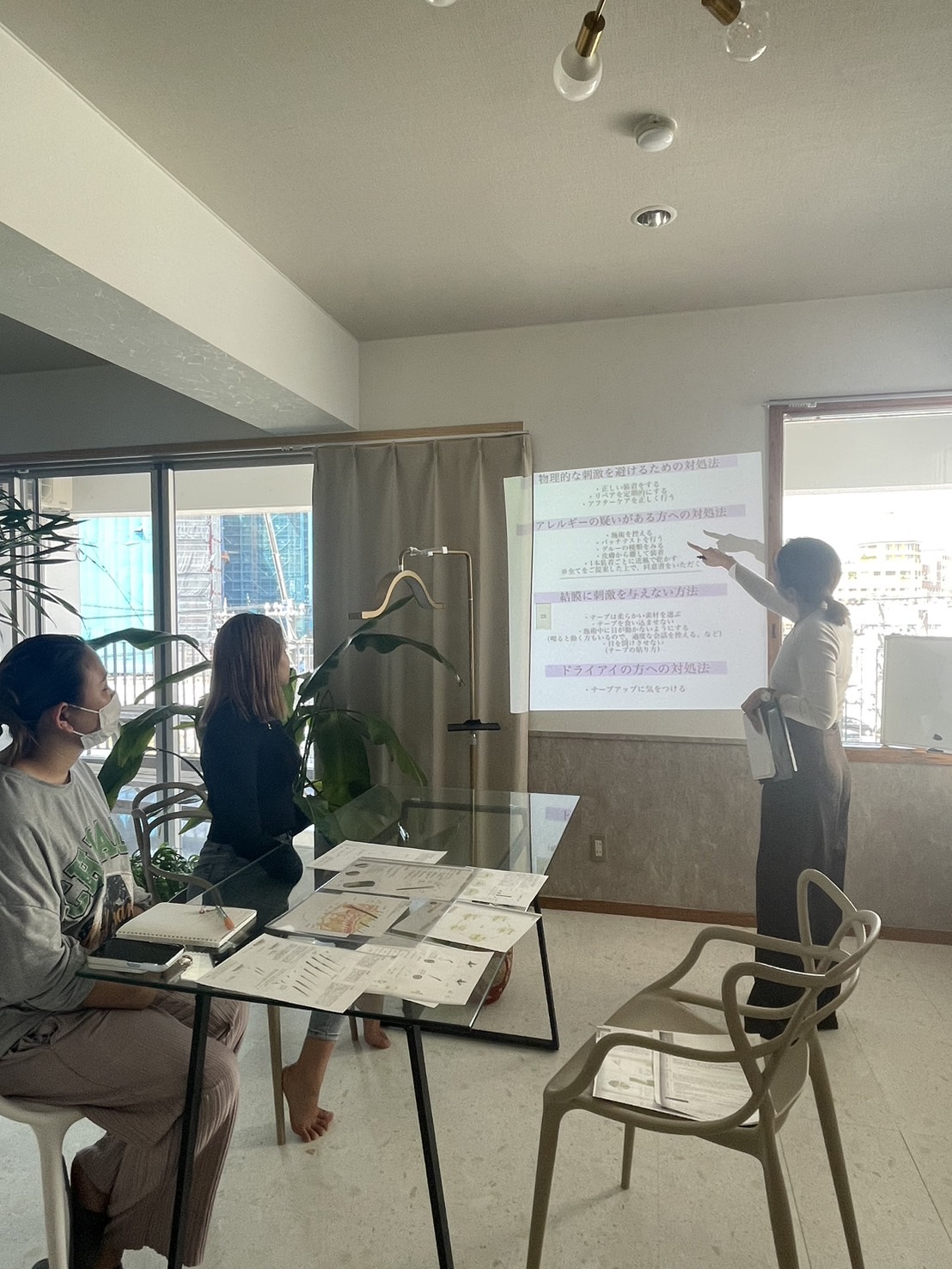 I learned about the structure of the eye and advanced techniques, and by exchanging opinions and feedback with other students about each other’s work, I was able to discover new things to incorporate into my own technique and what to be mindful of. This experience helped me provide a more comfortable and thoughtful service to my clients.